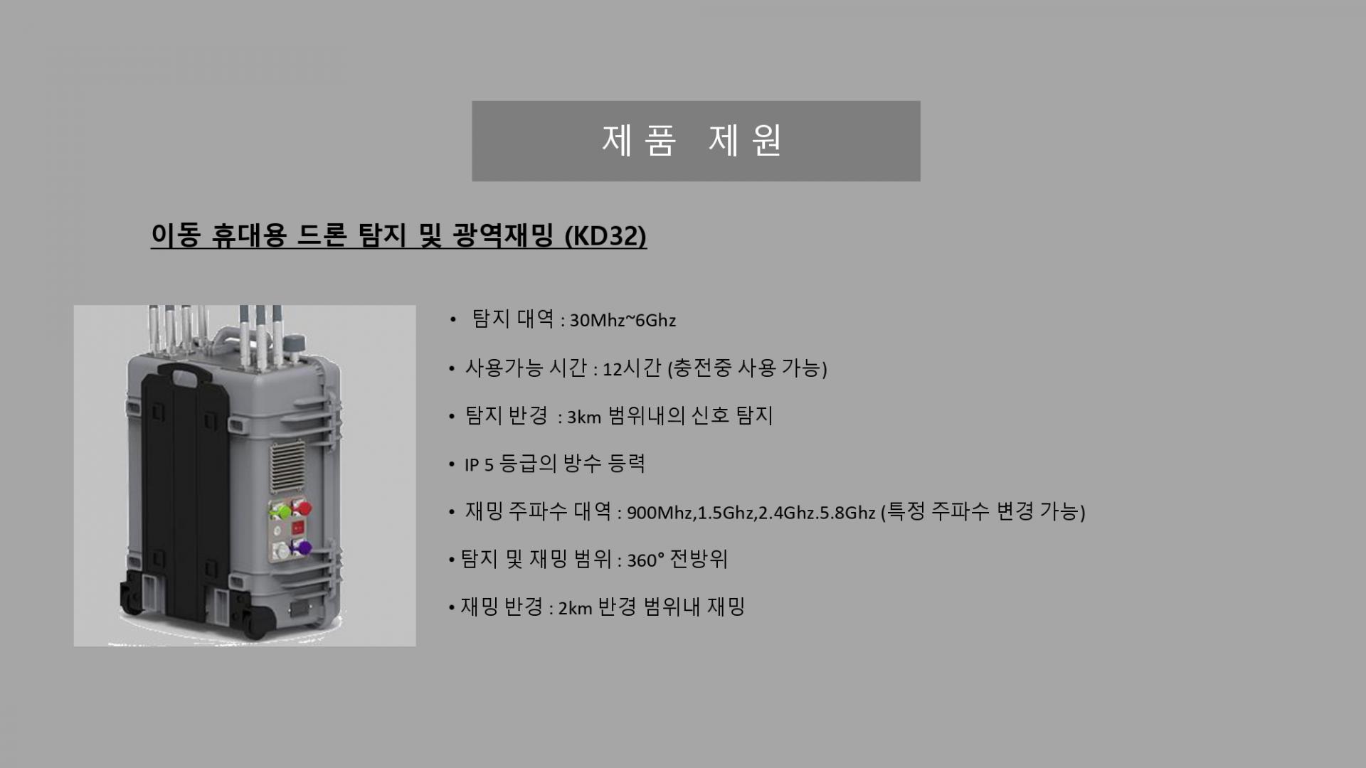 재밍 주파수 대역 : 900MHz,1.5GHz,2.4GHz,5.8GHz
