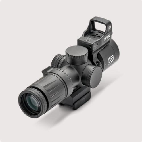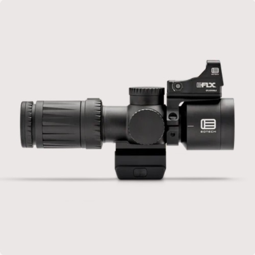 본체는 항공기 등급 알루미늄으로 제작되어 컴팩트하고 가벼우면서도 뛰어난 내구성을 자랑합니다. 7.1인치의 작은 크기에도 불구하고 김 서림, 방수, 충격 방지 기능을 갖추고 있습니다. 터렛은 캡으로 덮여 있으며 0.1 MRAD 단위로 정밀하게 조절할 수 있습니다. 회전식 다이얼을 통해 10단계 밝기 조절이 가능한 조명식 레티클을 사용할 수 있으며, CR2032 배터리는 약 300시간 동안 작동합니다. 독특한 디자인으로 대부분의 애프터마켓 미니 ACOG 마운트와 호환되는 일체형 베이스를 제공합니다. 배율이 없는 제품을 원하시는 사용자를 위해 EOTECH는 링 마운트와 EFLX ™가 포함된 두 가지 패키지를 제공하며, EFLX™ 는 스코프 전면 튜브의 12시 또는 45도 방향에 장착할 수 있습니다.