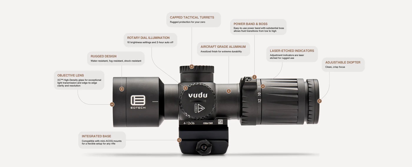 견고한 전술적 구조로 반동, 충격 및 극한의 사용 환경에서도 견딜 수 있습니다. 정밀 가공 및 프리미엄 렌즈 장착으로 전 세계 전문가들이 신뢰하는 흔들림 없는 성능과 내구성을 제공합니다.